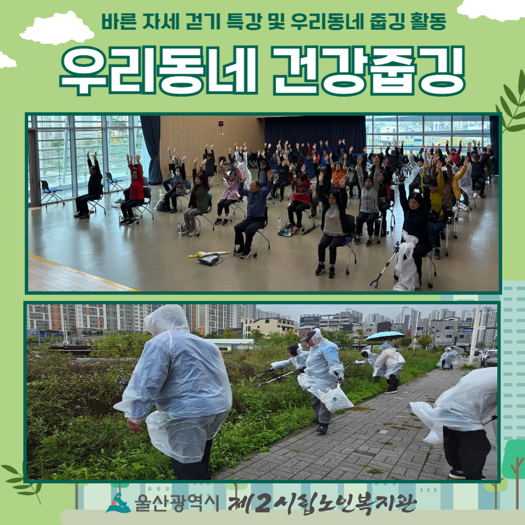 바른자세 걷기 특강으로 올바른 걷기자세, 앉은 자세 등을 배우고 복지관 인근 플로깅 활동으로 건강도 챙기고 환경도 지킨 뜻깊은 시간이었답니다.