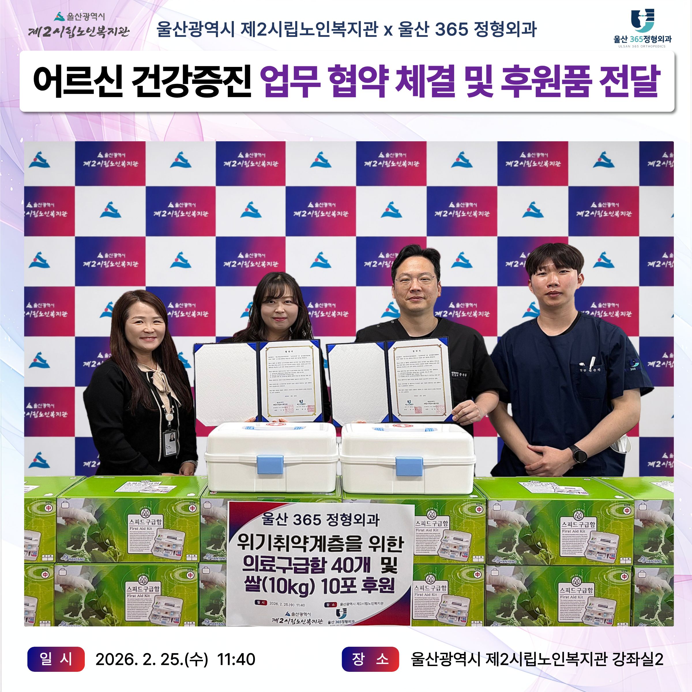 울산제2시립노인복지관-울산365정형외과, 지역사회 어르신 건강증진을 위한 업무협약 및 후원물품 전달식 진행