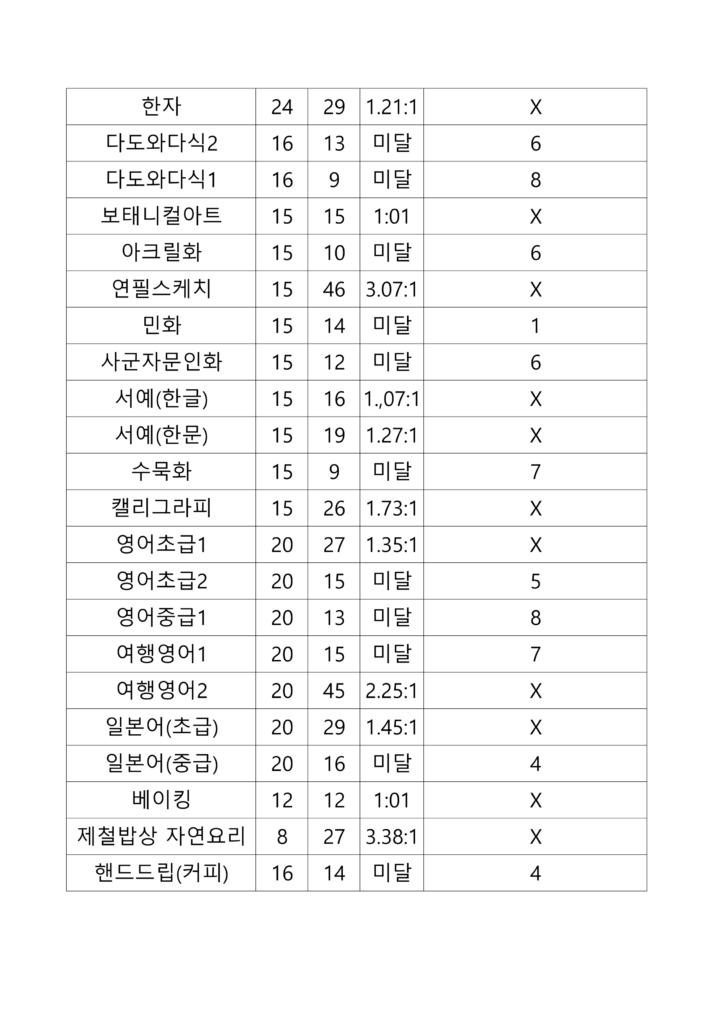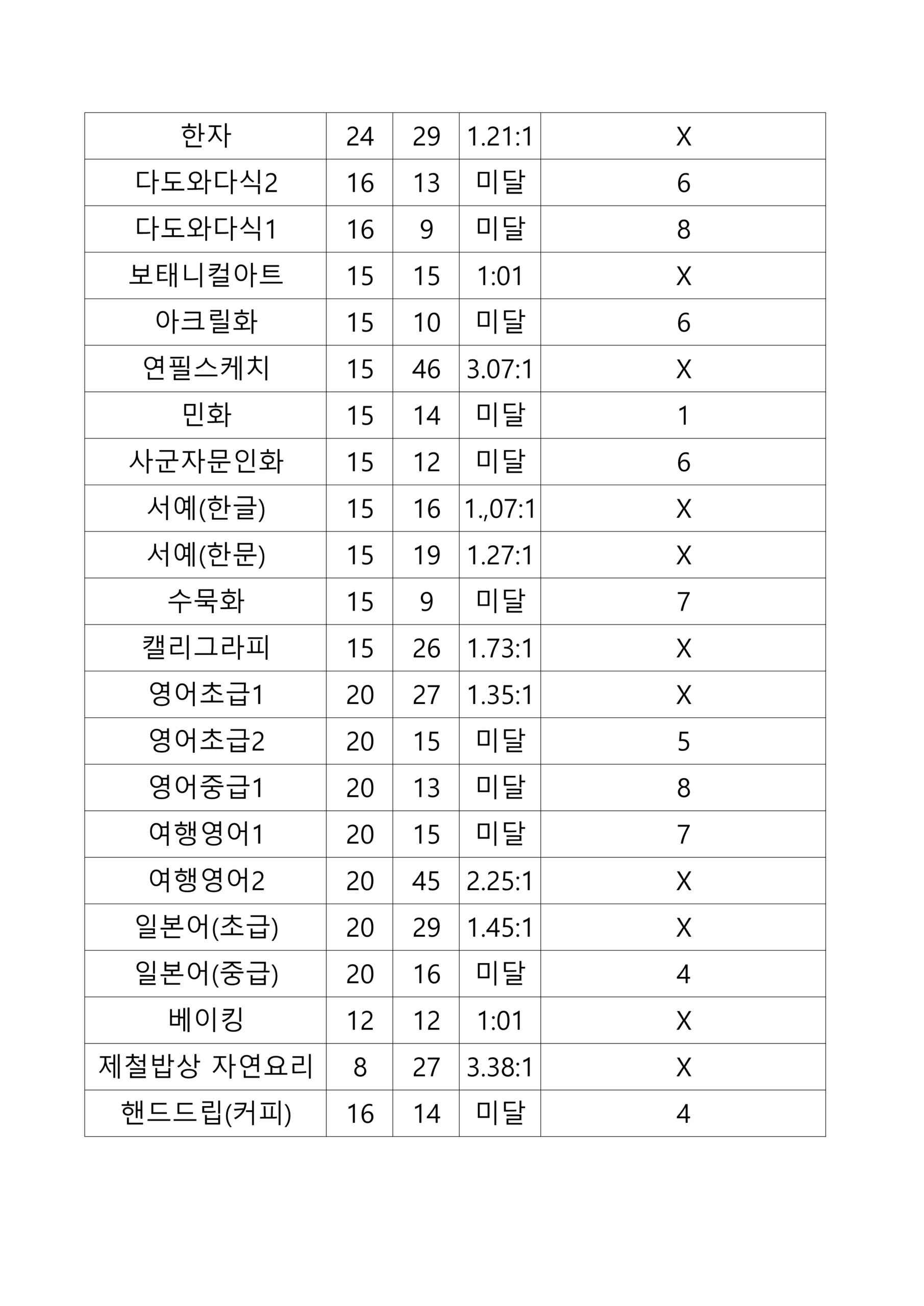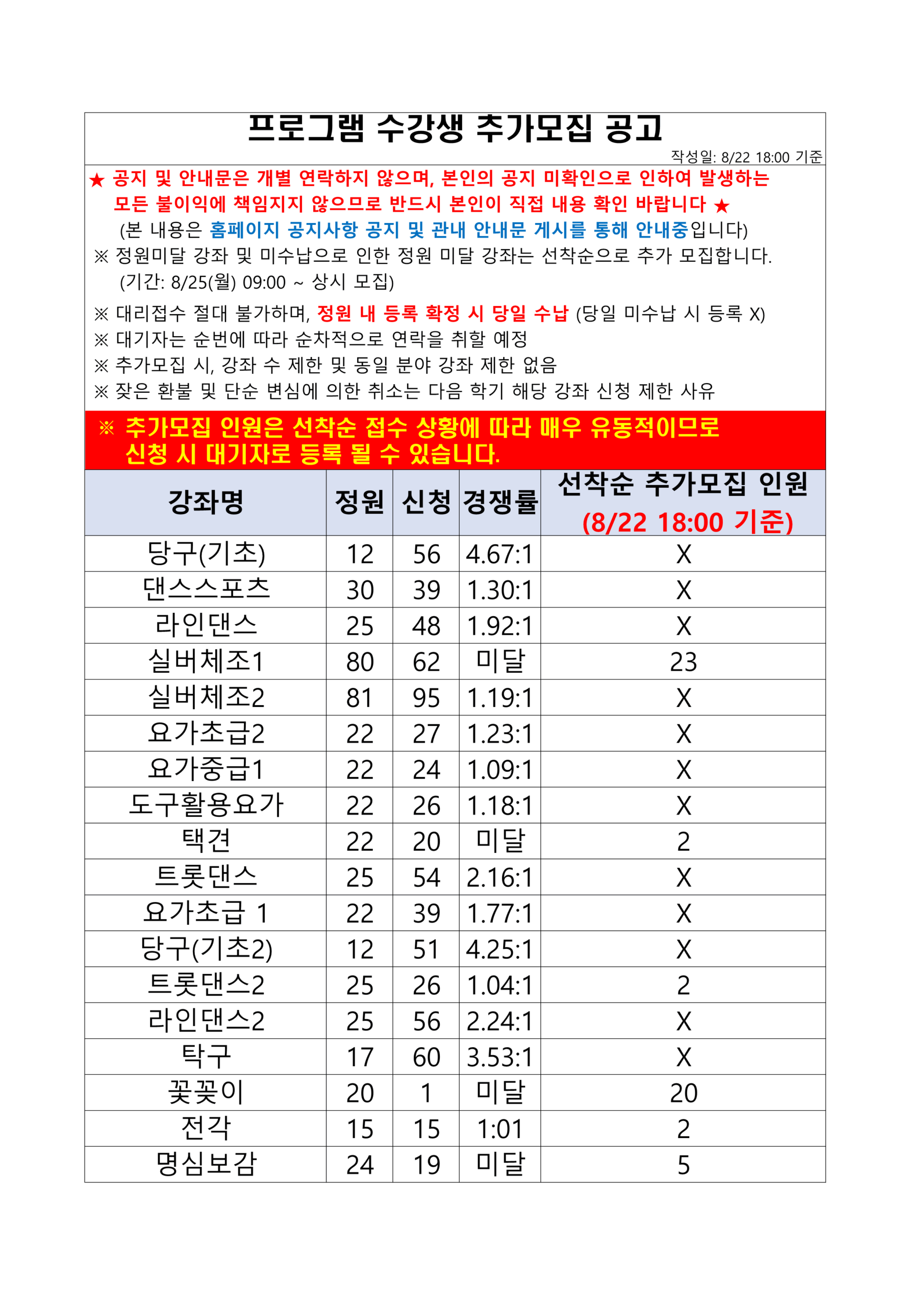 ※ 정원미달 강좌 및 미수납으로 인한 정원 미달 강좌는 선착순으로 추가 모집합니다.