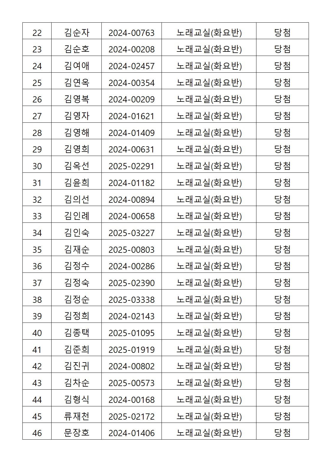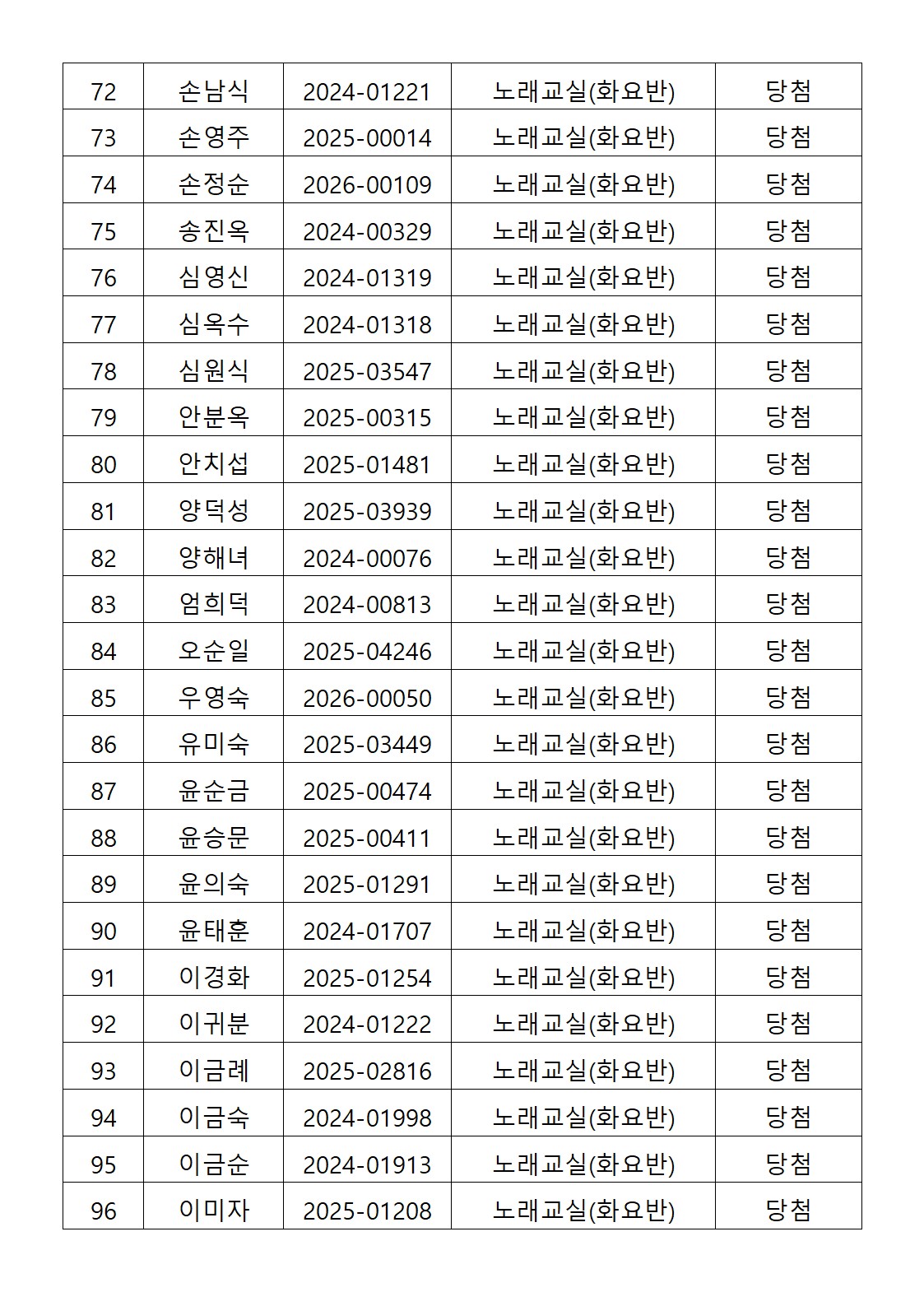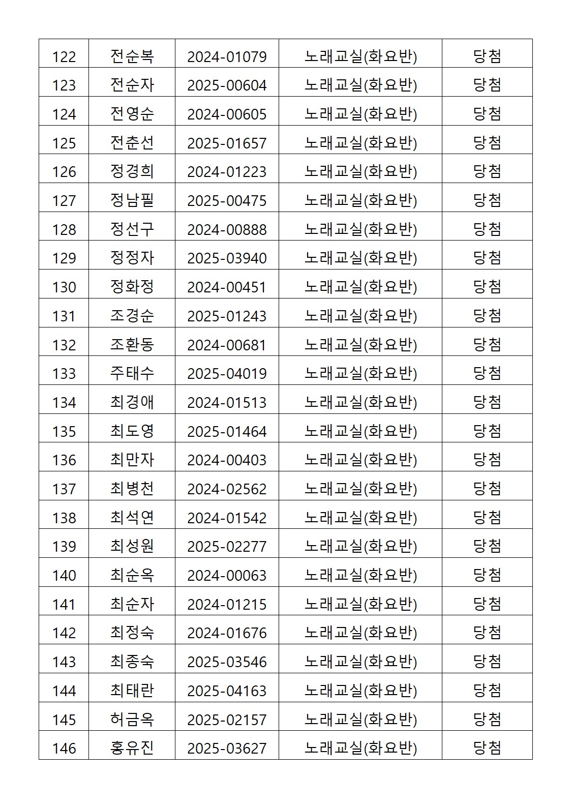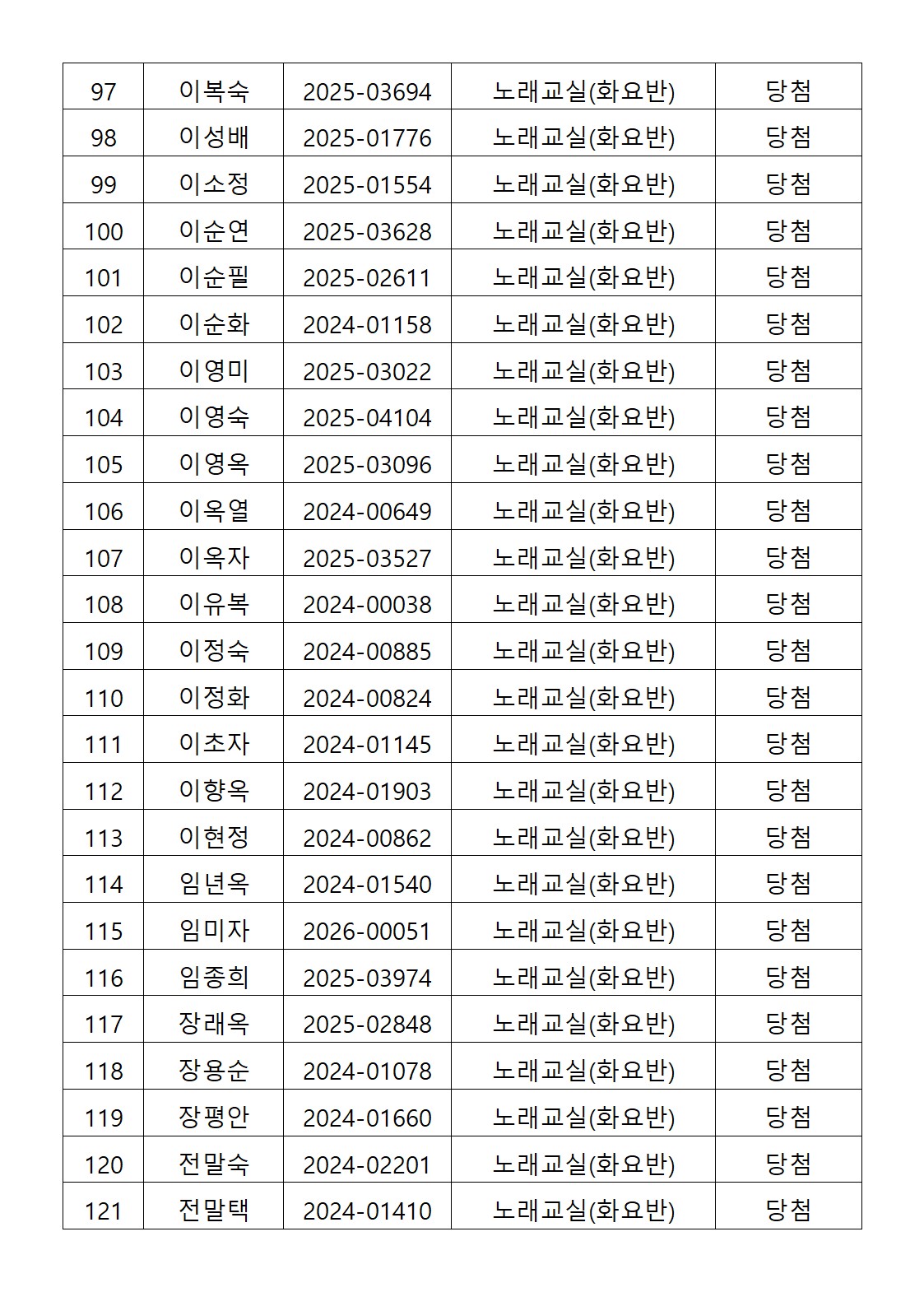[2026년도 상반기 평생교육프로그램 노래교실(화요반) 추첨결과 안내]