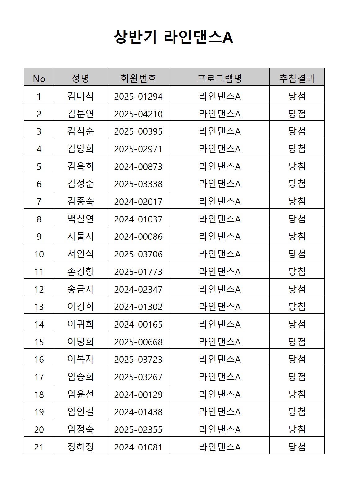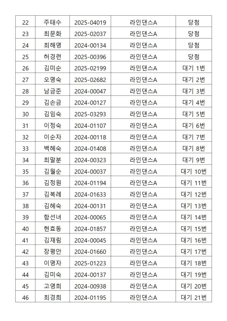 [2026년도 상반기 평생교육프로그램 라인댄스A 추첨결과 안내]