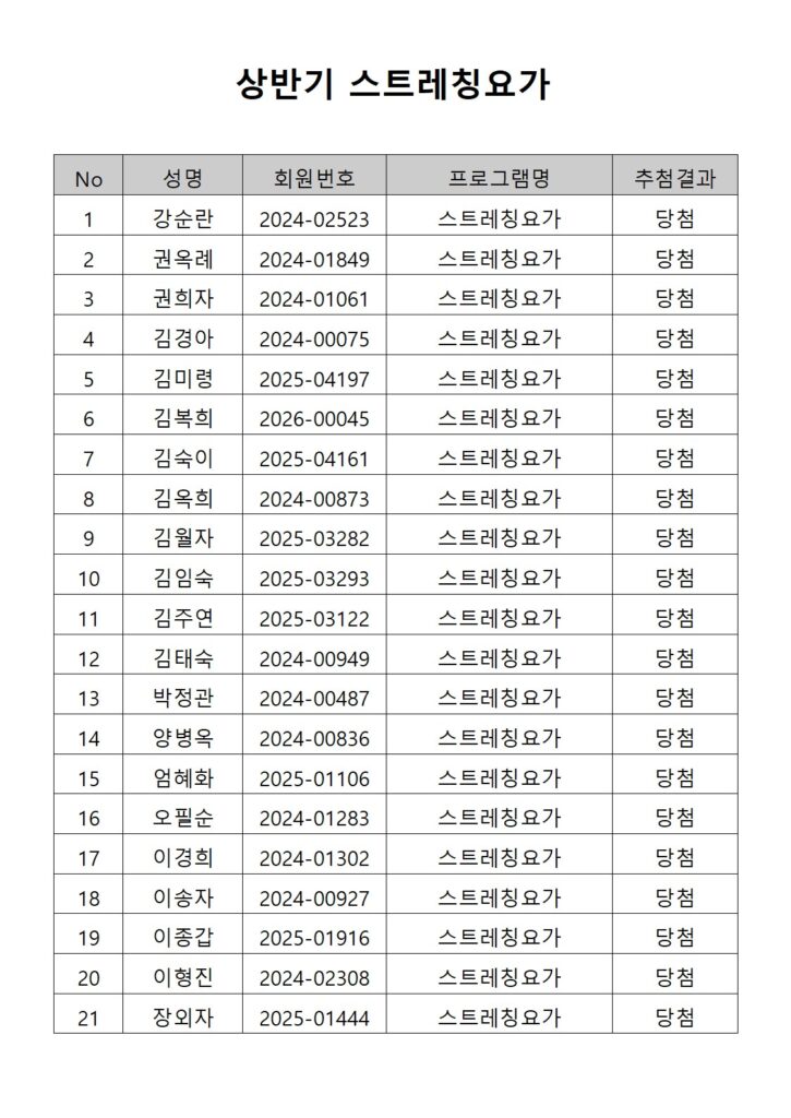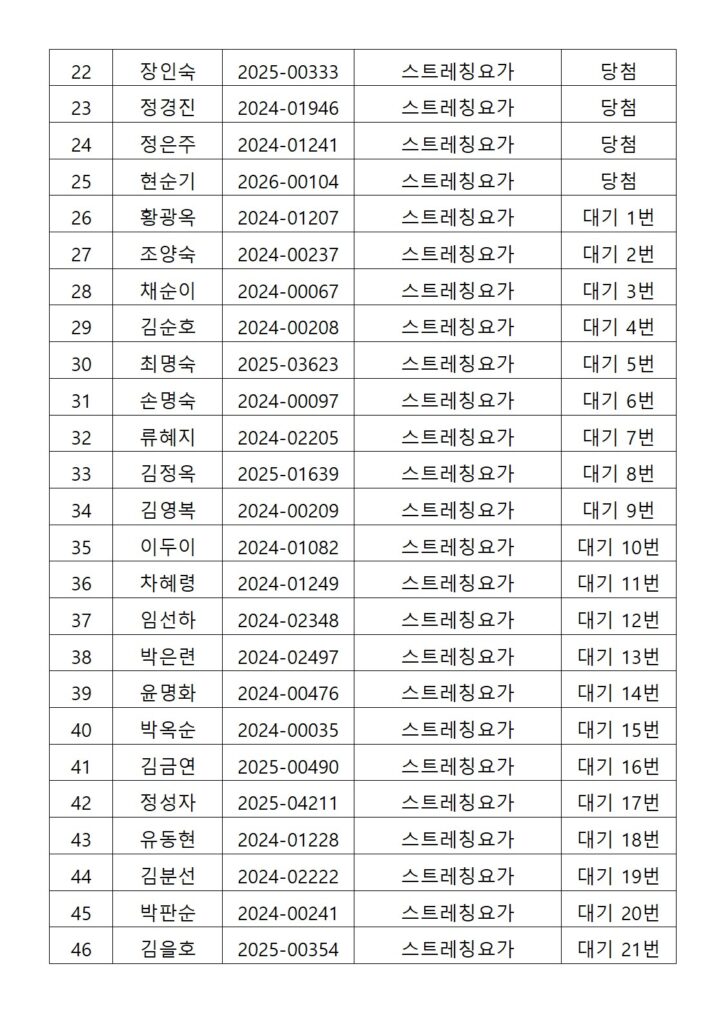[2026년도 상반기 평생교육프로그램 스트레칭요가 추첨결과 안내]