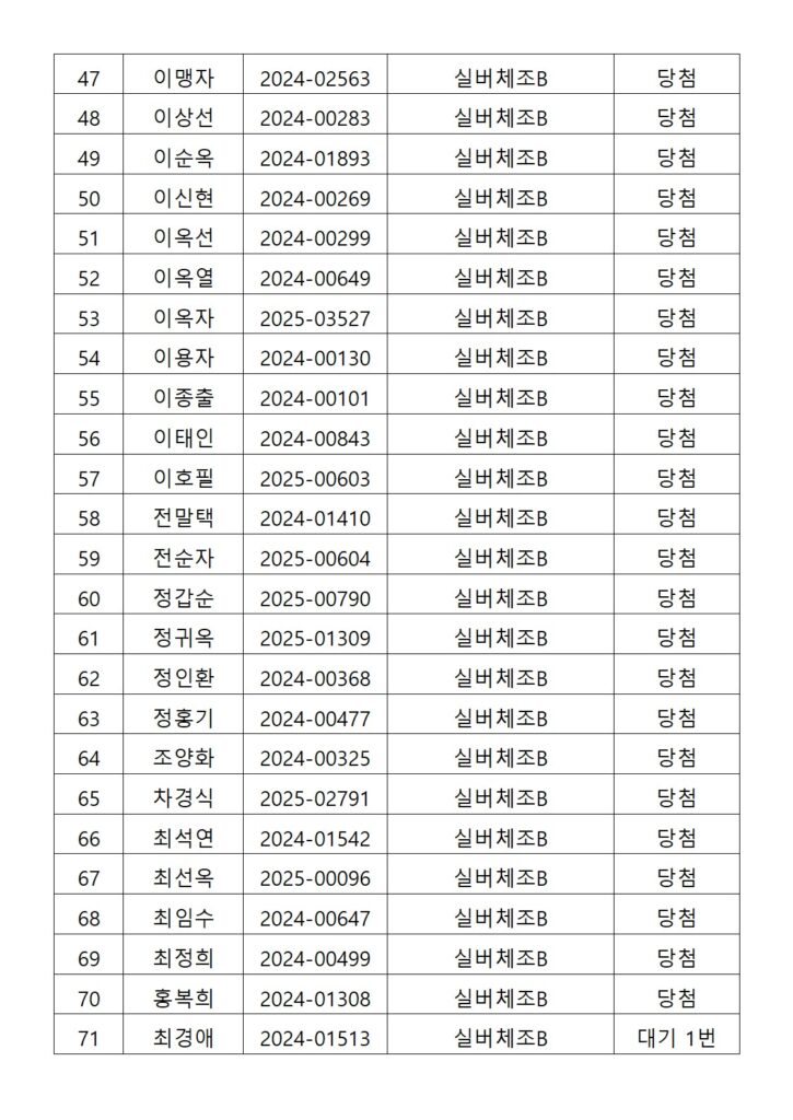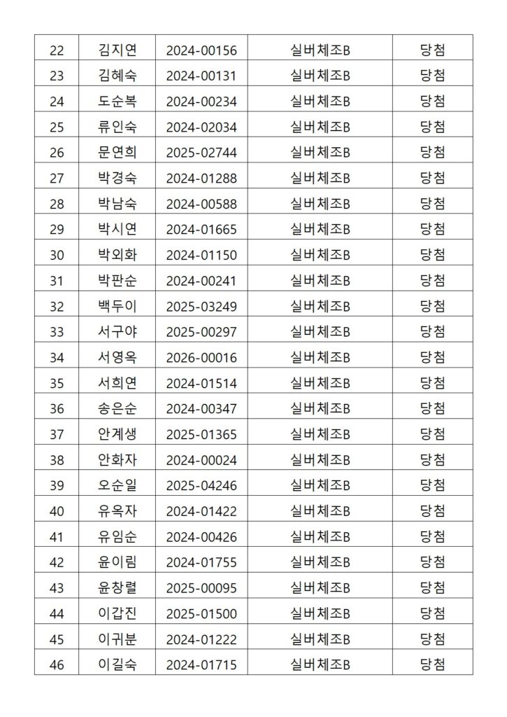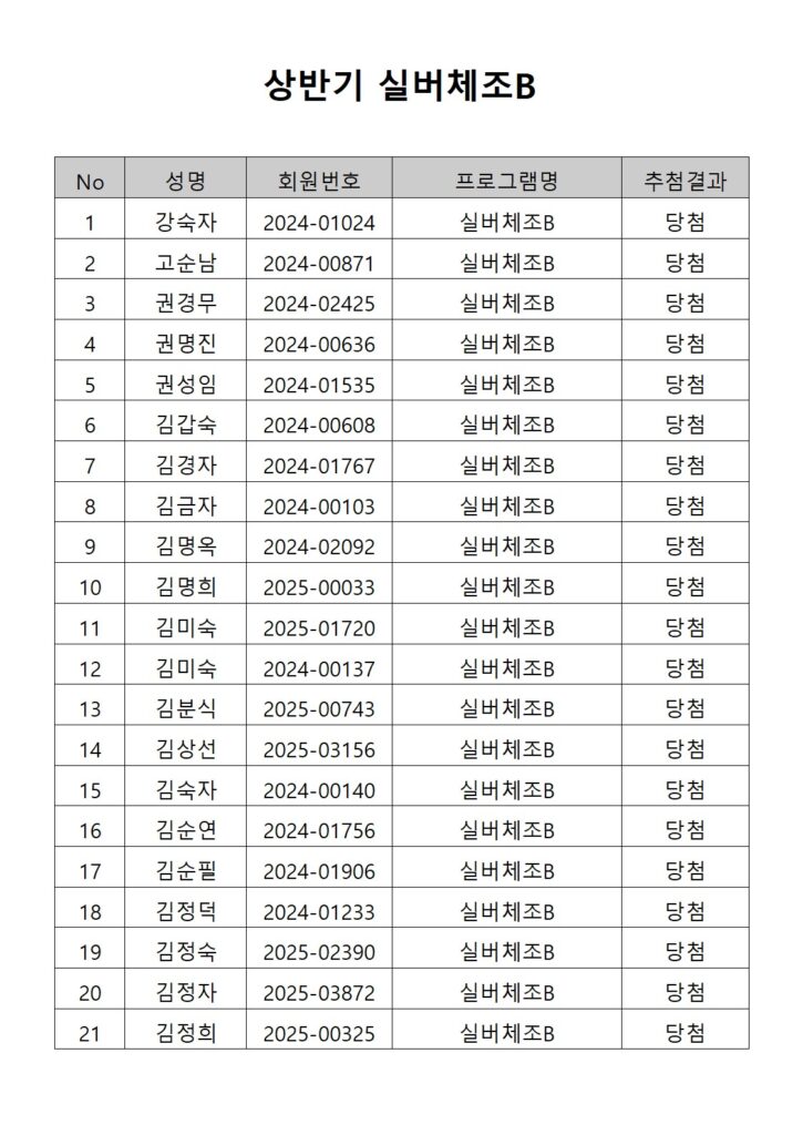 [2026년도 상반기 평생교육프로그램 실버체조B 추첨결과 안내]