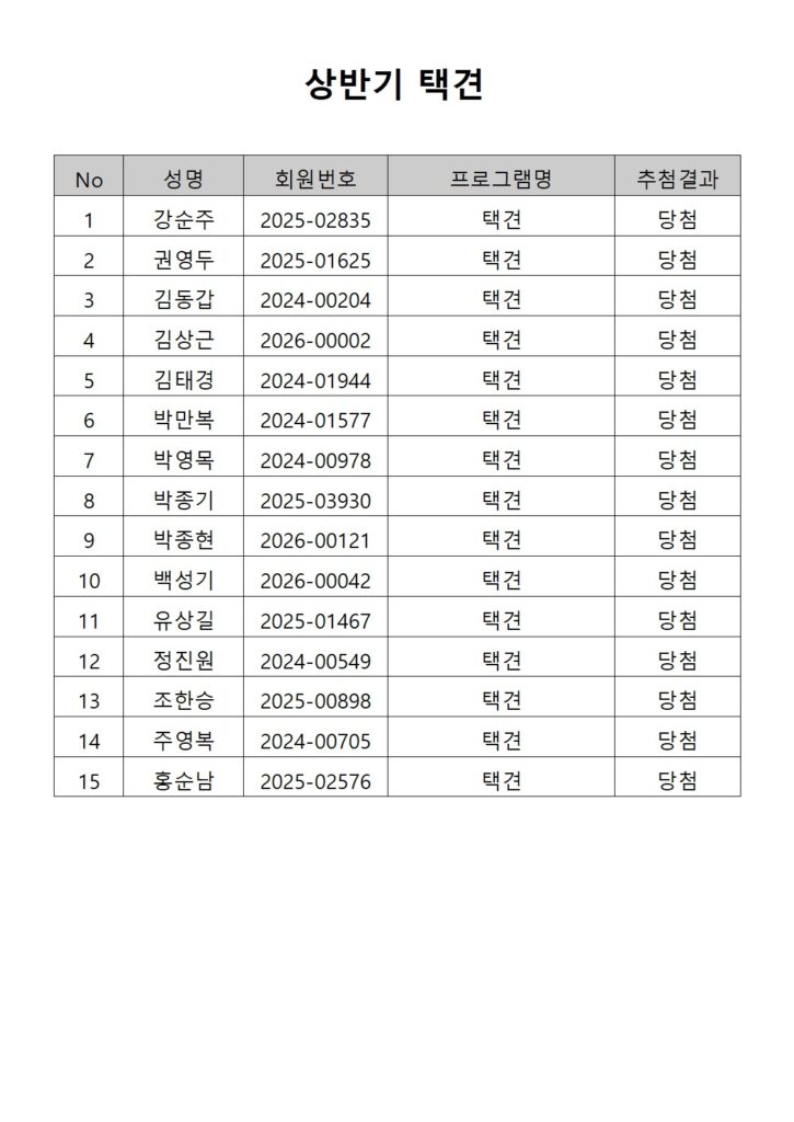 [2026년도 상반기 평생교육프로그램 택견 추첨결과 안내]