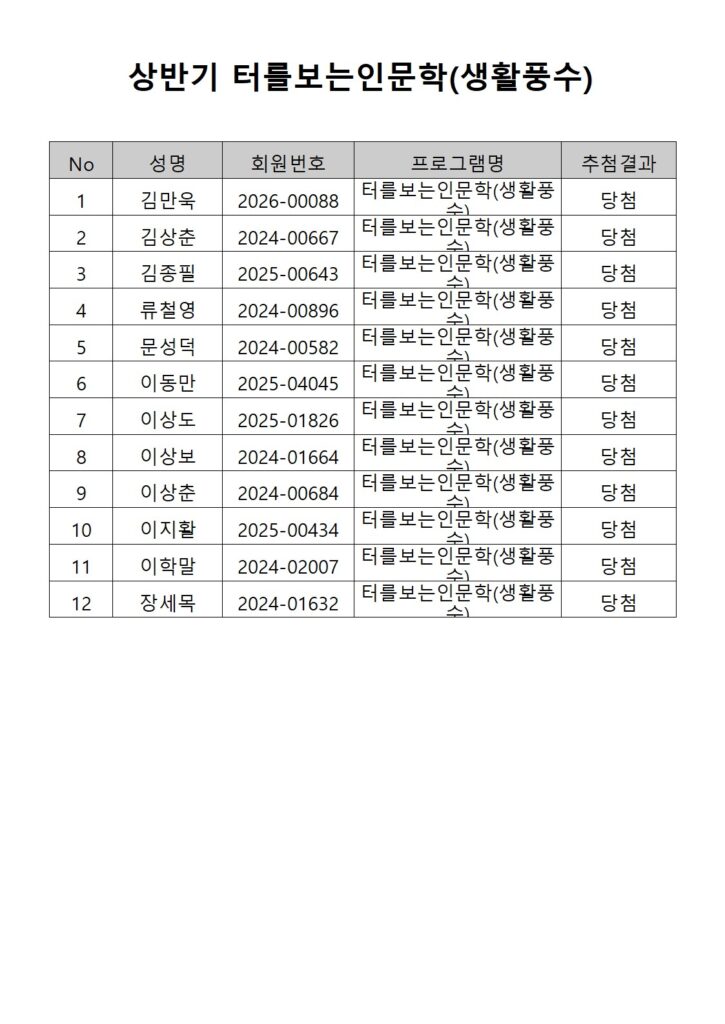 [2026년도 상반기 평생교육프로그램 터를보는인문학(생활풍수) 추첨결과 안내]