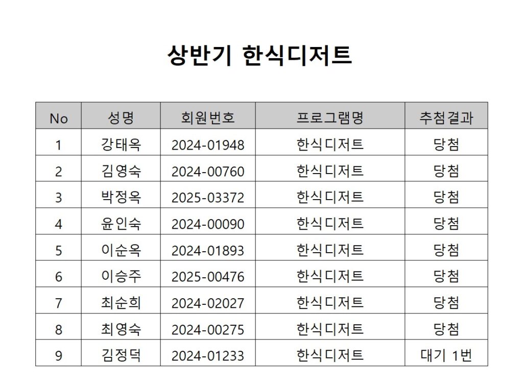 [2026년도 상반기 평생교육프로그램 한식디저트 추첨결과 안내]