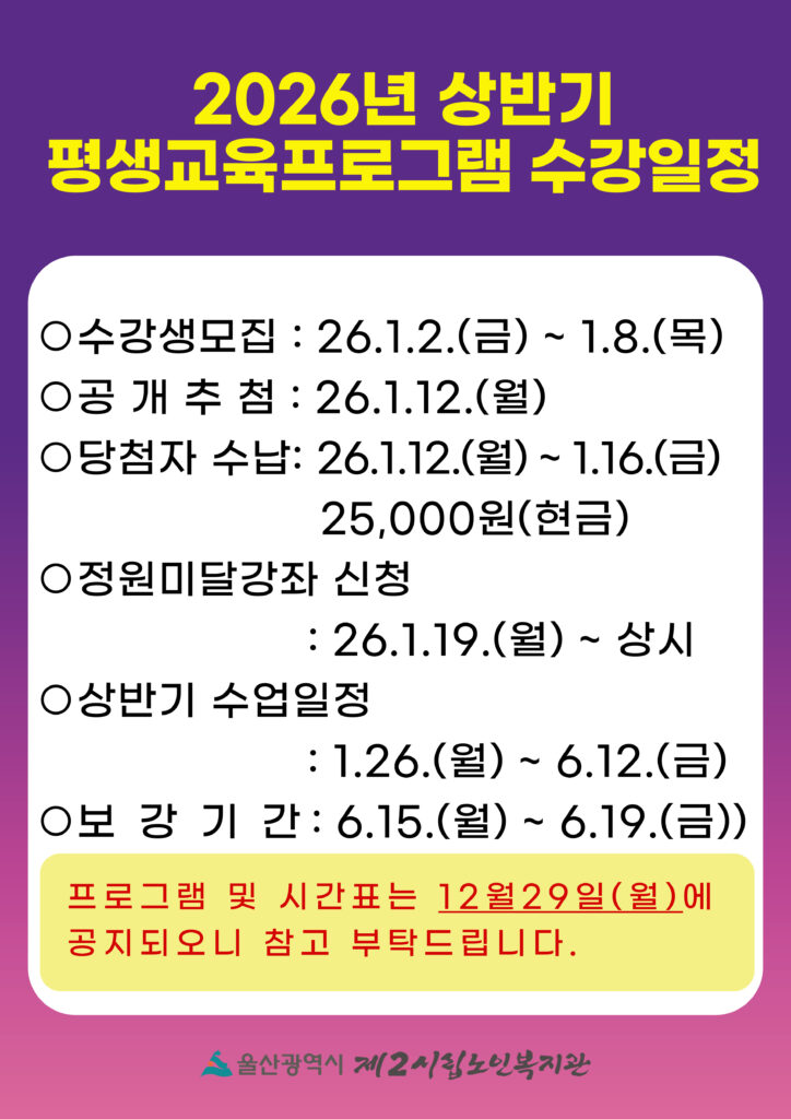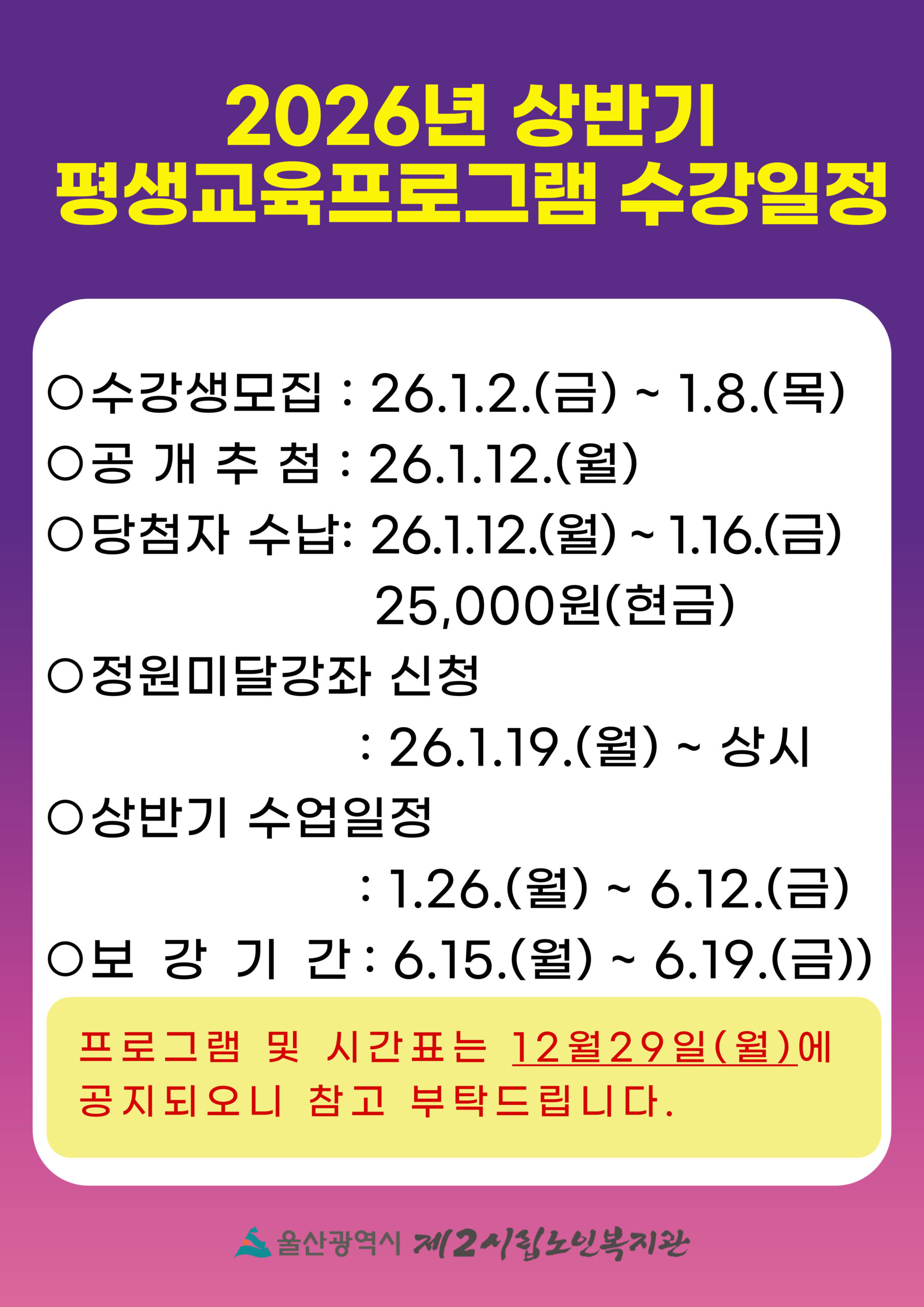 ○정원미달강좌 신청: 26.1.19.(월) ~ 상시